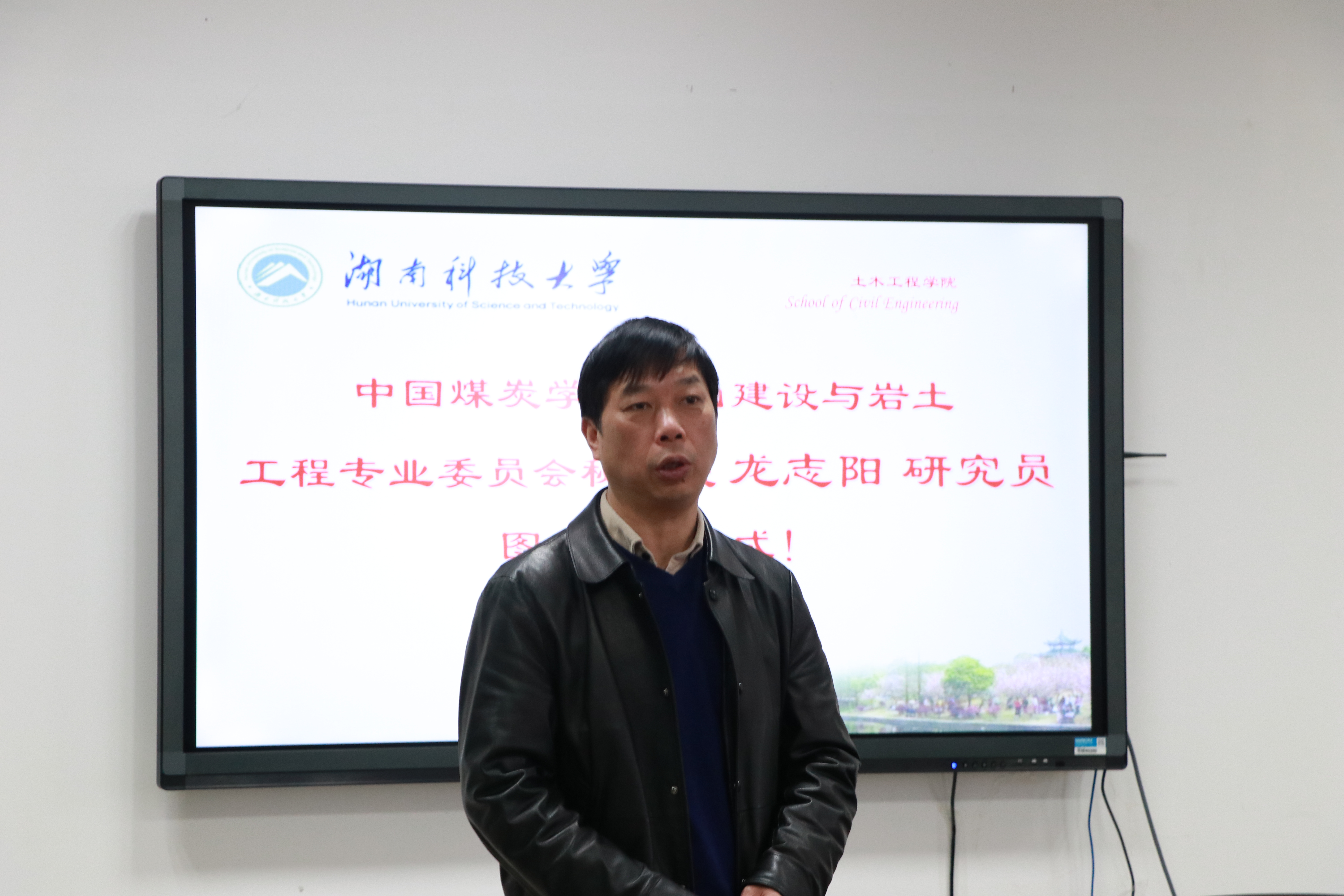 会议在陈书记介绍完来宾后正式开始。首先,龙志阳研究员对矿山建设与岩土工程专业的主要学习课程与主要分配去向进行了简单介绍。接着,龙志阳研究员从博览知识研究问题、领悟指南申报课题、缜密方案稳妥实施、全面总结鉴定报奖、撰写论文成才立业五个方面介绍了本次报告的主题。其中,龙志阳研究员在介绍研究问题的方式时给出了参加学术会议、参观各类设备展览、提出研究问题等建议。在谈到撰写论文成才立业时,龙志阳研究员从论文撰写技巧、论文投稿期刊范围、申报各种人才奖励、近况成为行业专家等方面给出了详细的建议。最后,龙志阳研究员在回答老师以及学生们提出的问题时也提到了岩土工程专业的美好前景。