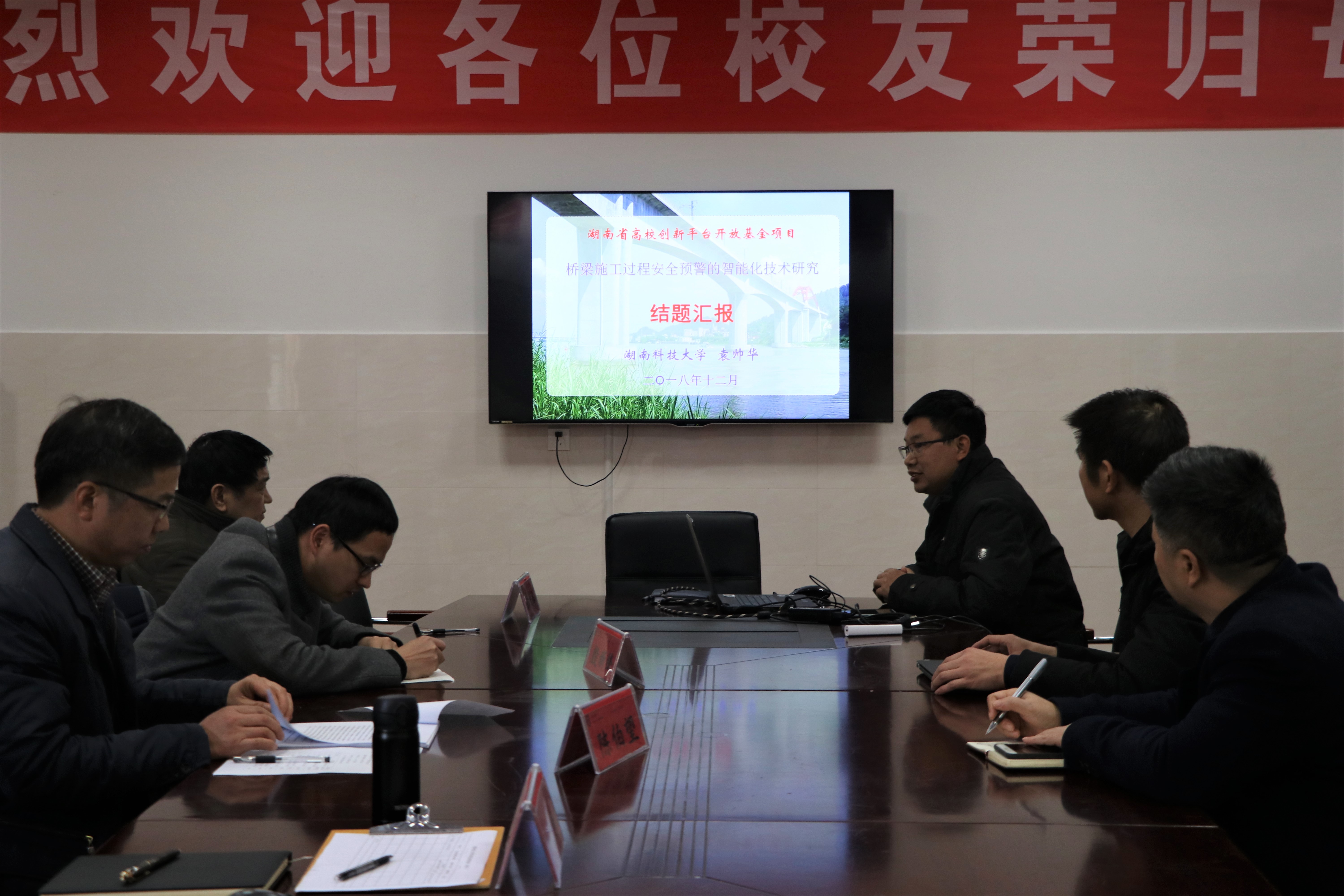 12月18日15:00,2018年教育科研项目结题会在土木楼230顺利进行。参加此次会议的有中南林业科技大学陈伯望教授、长沙理工大学殷新锋副教授、中交三航局李业勋高工、湖南科技大学邹声华教授、湖南科技大学张鹏副教授等5位评审专家和袁帅华、罗许国、聂忆华、李孔清、韩巧云、王世鸣、杨秀贞和杨怀8位汇报人及学院其他老师。副院长汪建群担任本次会议的主持人。