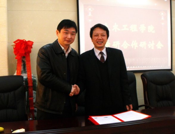 随后,我院院长钟新谷发表了激情的讲话。他表明,我院将更加重视为社会和地方经济的建设培养人才,发挥高校人才和设备的优势,加强与企业及事业单位的产学研合作,为推动社会经济的发展做出贡献。接着,钟新谷还代表我院相继与中国有色金属长沙勘察设计院、中铁十六局集团第三工程公司、湖南路桥集团和金侨建设集团等企业代表签订了合作合同,拓宽了我院与外界合作渠道,为我院的人才培养与输出,以及企业单位的发展进步起着积极的作用。