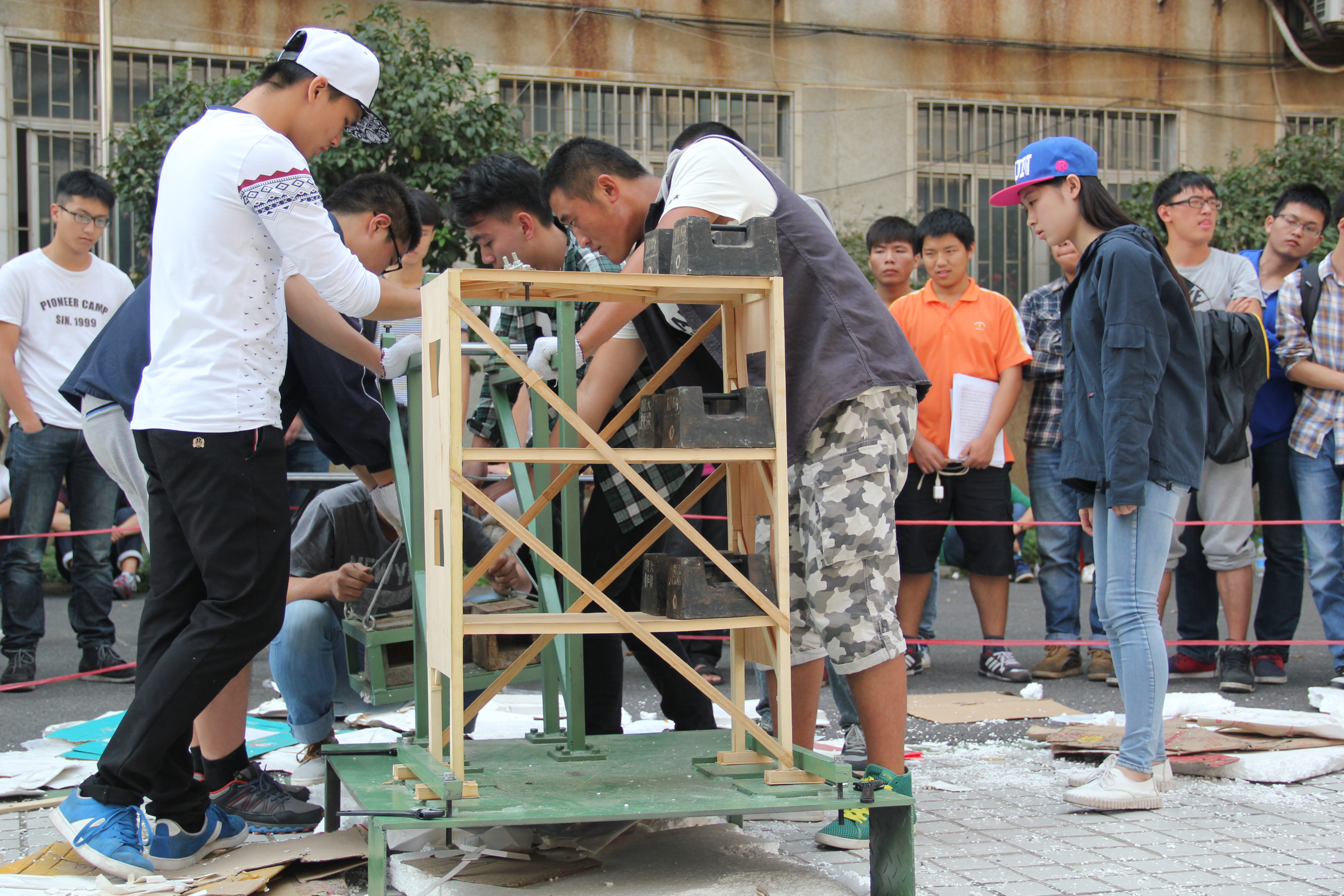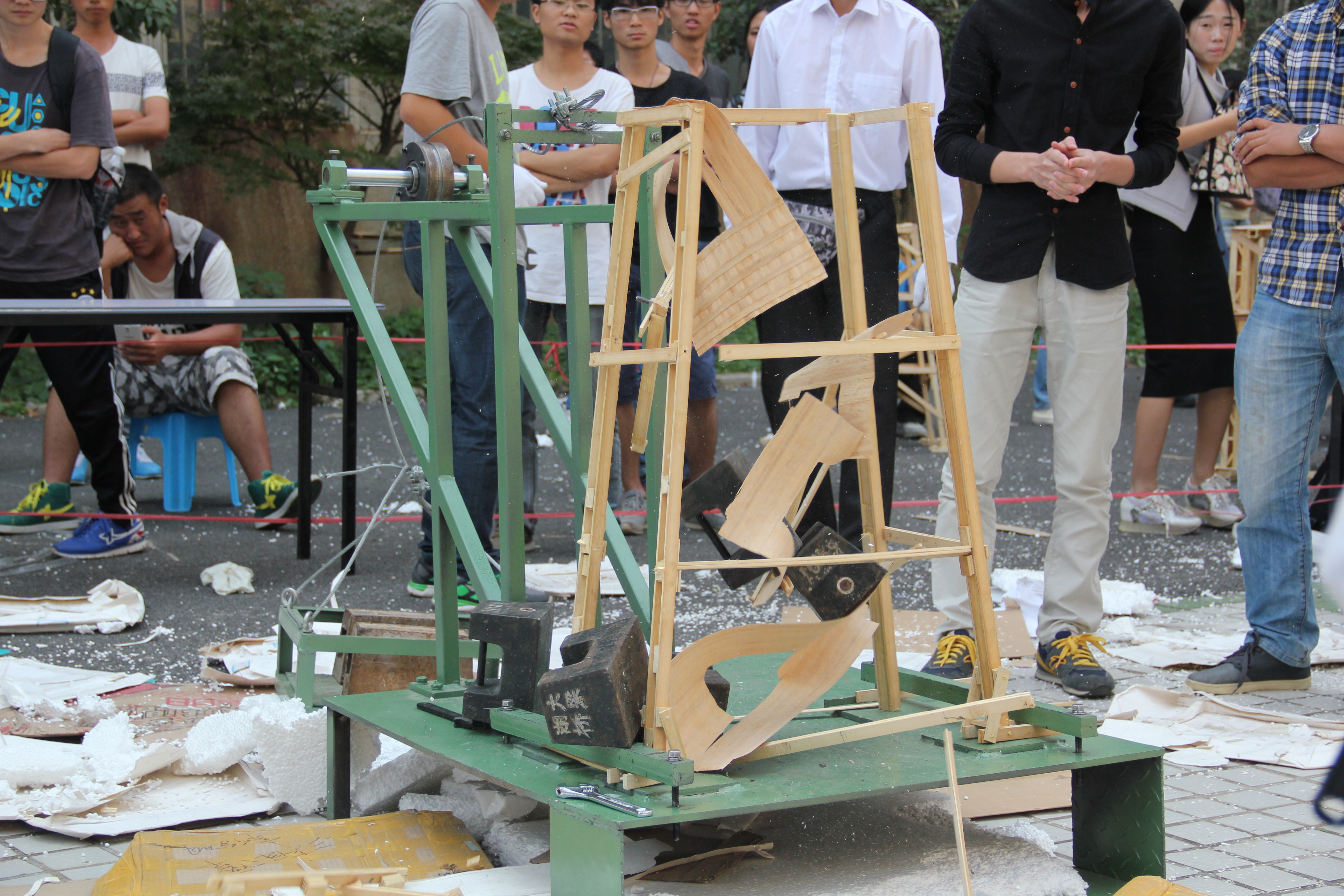 每件参赛作品的最终评分由计算书及设计图(10分)、结构选型与制作质量(10分)和加载试验的荷重比(80分)等三个部分组成,得分高者为优胜。