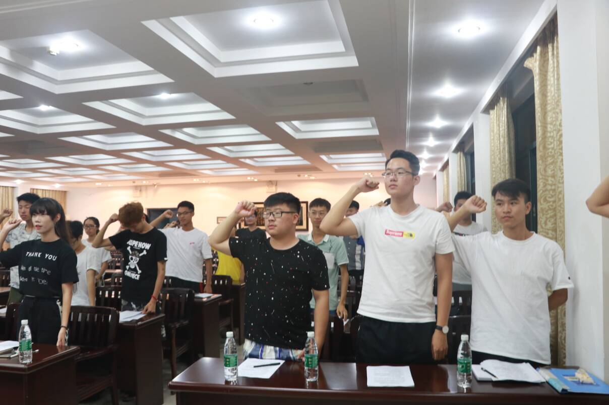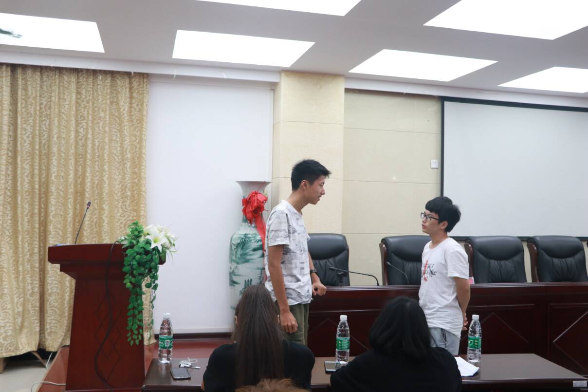 会议伊始,主持人志愿团副部长王子辉主持会议。首先,志愿团副部长梁曦带领全体成员进行宣誓。接着,赵晓玲老师就以下四点对志愿者们进行了迎新知识的培训:第一,志愿者们要积极宣传学校,接受新生咨询,热情解决新生们的问题 ;第二,志愿者们要向新生们提供交通引导,例如宿舍区,药店,医院,食堂等地方;第三,帮助新生完成网上自助报道缴费,确认新生们的身份,并发放钥匙;第四,所有志愿者8月15号务必尝试湖南科技大学自助迎新移动端。最后,分别请三组志愿者进行模拟演练,赵老师进行对他们的表现点评。会议最后,团委学生会主席范金禹、团委学生会常务副主席兼第二副书记罗凌峰依次进行发言总结。