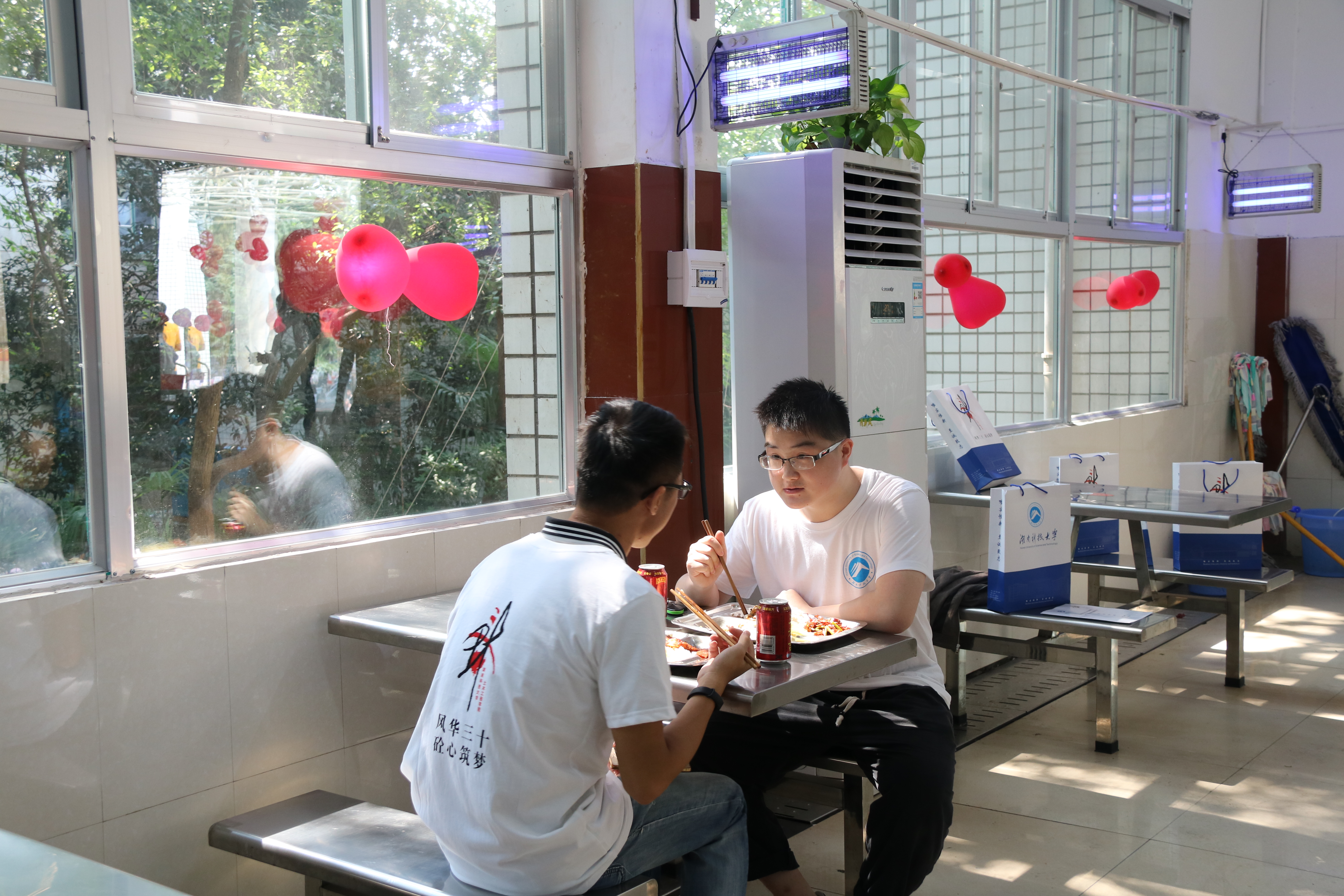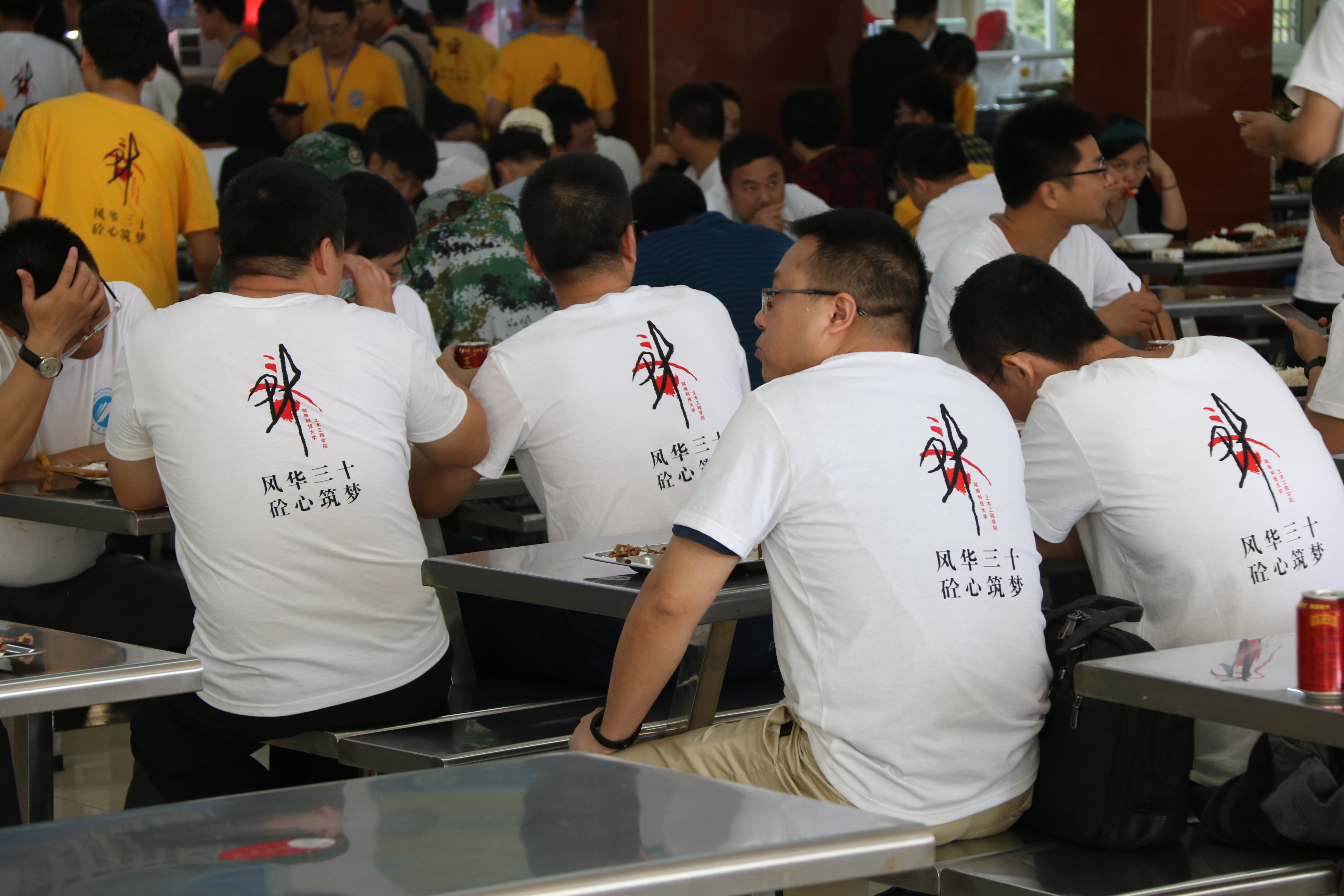 为了迎接远道而来的校友,我院将美食广场设定为校友午餐就餐点,同时还发放了总值为20元的系列餐票。 凉菜、热菜、面条、米饭,一应俱全,小米温粥、银耳莲子羹、饮料水果,应有尽有,最大限度满足校友的口味需求。身穿黄色T恤的志愿者也在热情的引导校友,给予校友们最直接的帮助,校友们纷纷表示感受到了家的温暖, 熟悉味道勾起了他们味蕾中对湘潭对土木深深的记忆。