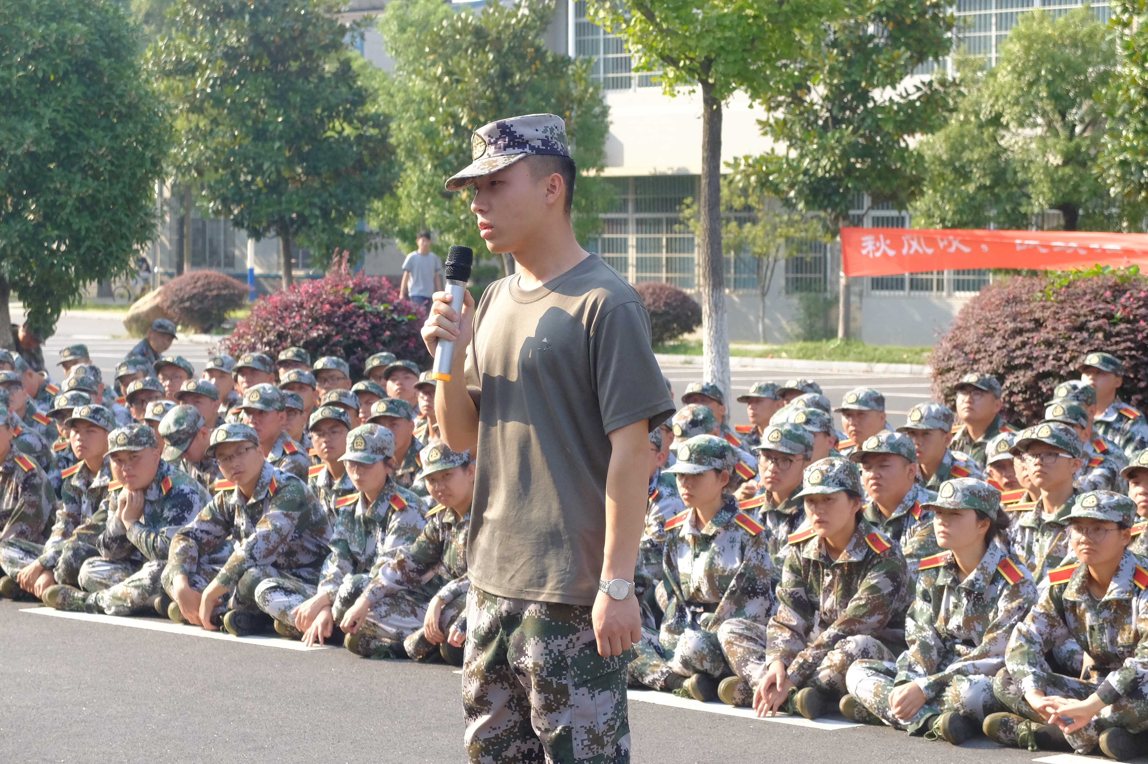 为端正我院18级新生的军训态度,10月5日下午15:30,我院军训连队就军训场地现场组织了一场退伍老兵讲述军队生活的分享会。此次分享会面向我院18级全体军训新生,由一营二连六排教官黄起超主讲。