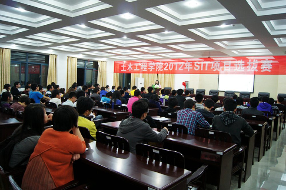 为培养大学生的研究性学习能力,倡导以学生为主体的创新性实验改革,激发学生的创新思维和创新意识,提高自身创新能力和实践能力,并鼓励更多的同学开展创新性实验项目活动,4月19日晚,我院在土木楼201会议室举办了SIT项目负责人(学生)现场答辩选拔赛。 本次选拔赛由副院长谢献忠任组长,共邀请了易贵元、刘锡军等九位相关专业的老师担任评委。该选拔赛从制度的制定及实施完全遵守公平、公正的基本原则,所有指导教师均采取回避措施,其中包括院长钟新谷、道路与桥梁工程系主任聂忆华等。参加答辩的负责人结合PPT对申报项目进行了展示,评委们针对申报项目进行现场提问,并根据答辩得分和申报表得分计算最终综合成绩。 在简短的开幕式过后,各申报项目负责人纷纷登台展示了自己的研究性学习及创新性实验项目。他们从项目研究背景、实施的方案以及创新点等方面进行介绍,重点阐述了项目所能取得的预期成果和优势所在。其中《水力驱动式竹炭纤维生物盘片研究及其应用》这一项目中提出的诸多创新点都得到了评委老师们的一致认可。 选手们在答辩时表现得十分出色,面对老师们所提出的问题能够从容应答,利用自己所查找的资料详细解释,语言机智幽默。同时,各评委也积极地为他们提供专业指导,例如模型的构建、项目可行性、社会及经济效益和安全性问题等。 最后,谢献忠副院长对此次比赛进行了综合点评,他称赞了各位选手的表现,指出他们的参赛项目非常具有创新性,在介绍方案时思路清晰,同时也对选手们流利的语言表达能力予以肯定。 本次比赛所有参赛项目均获得院级奖励,其中《水力驱动式竹炭纤维生物盘片研究及其应用》等四个申报项目被评为一等奖并推送学校进行审批,其余六个项目均被评为二等奖以带动更多的学生在大学阶段参与科学研究与发明创造的训练。