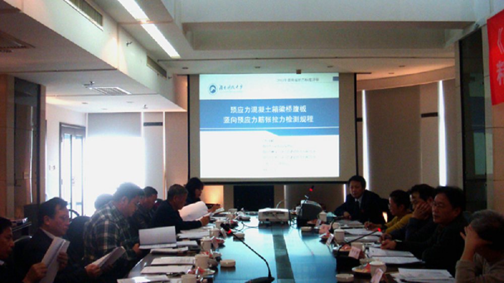 12月6日,湖南省质量技术监督局会同湖南省交通厅组织相关专家在长沙召开了《预应力混凝土箱梁桥腹板竖向预应力精轧螺纹钢筋张拉力检测规程》审查会议,我院院长钟新谷参加此次会议。