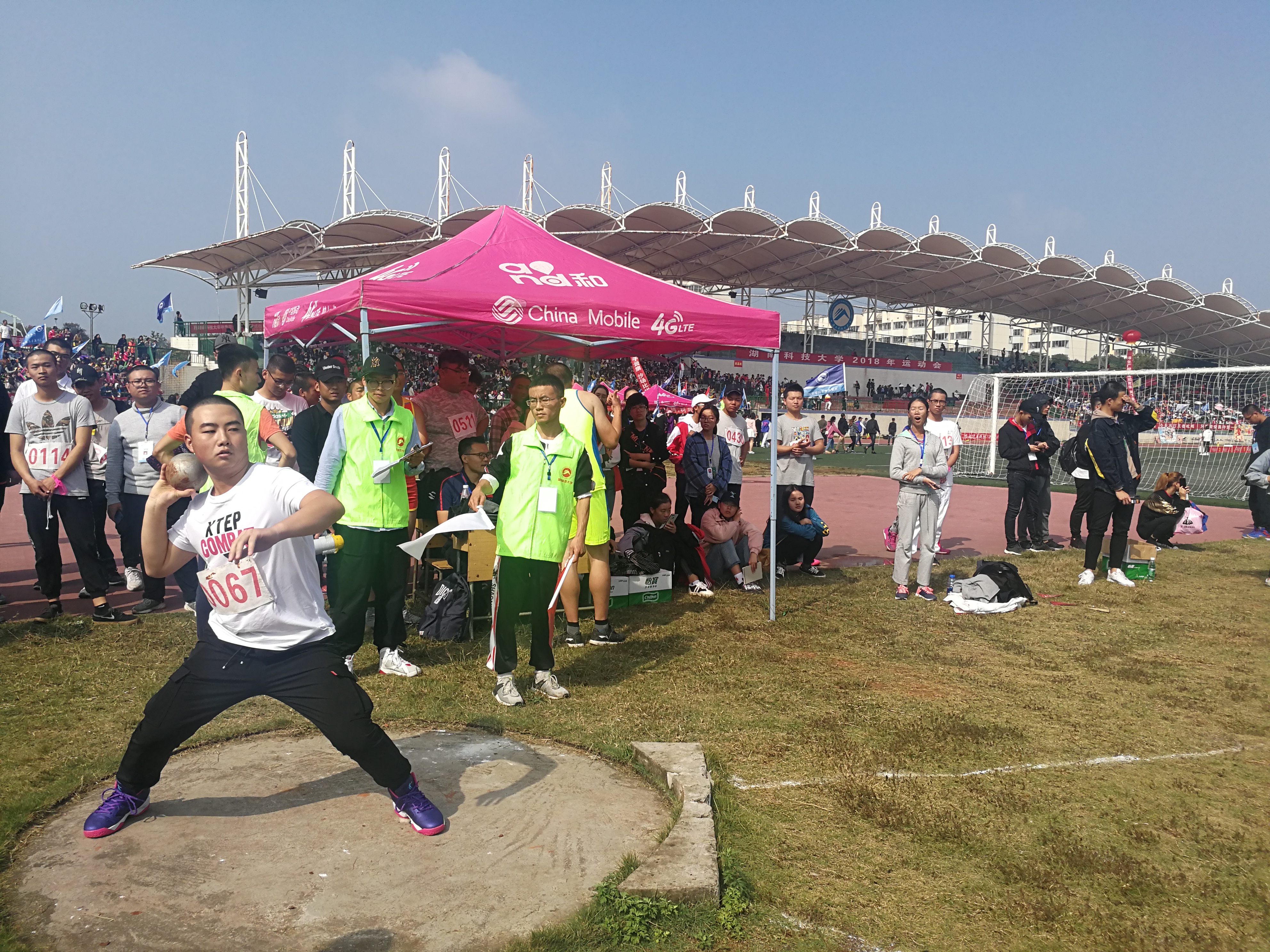10月26日9:40,男子铅球比赛在第一田径场上火热开赛。我院的参赛选手为0066号马佳南和0067号罗峰,他们将用精神饱满的状态全力应对即将到来的、备受关注的比赛。